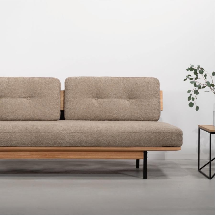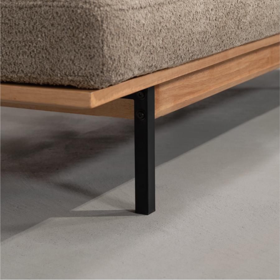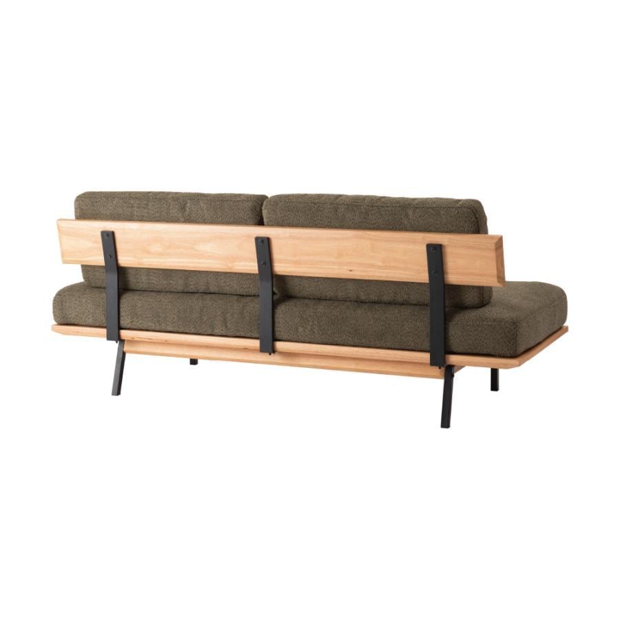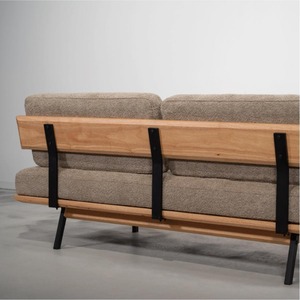 背もたれの裏面はオーク材とスチールを掛け合わせたベンチ風のデザインになっており、どこから見ても美しい佇まいを保ってくれるためリビングの中央に置いても雰囲気を損ないません。