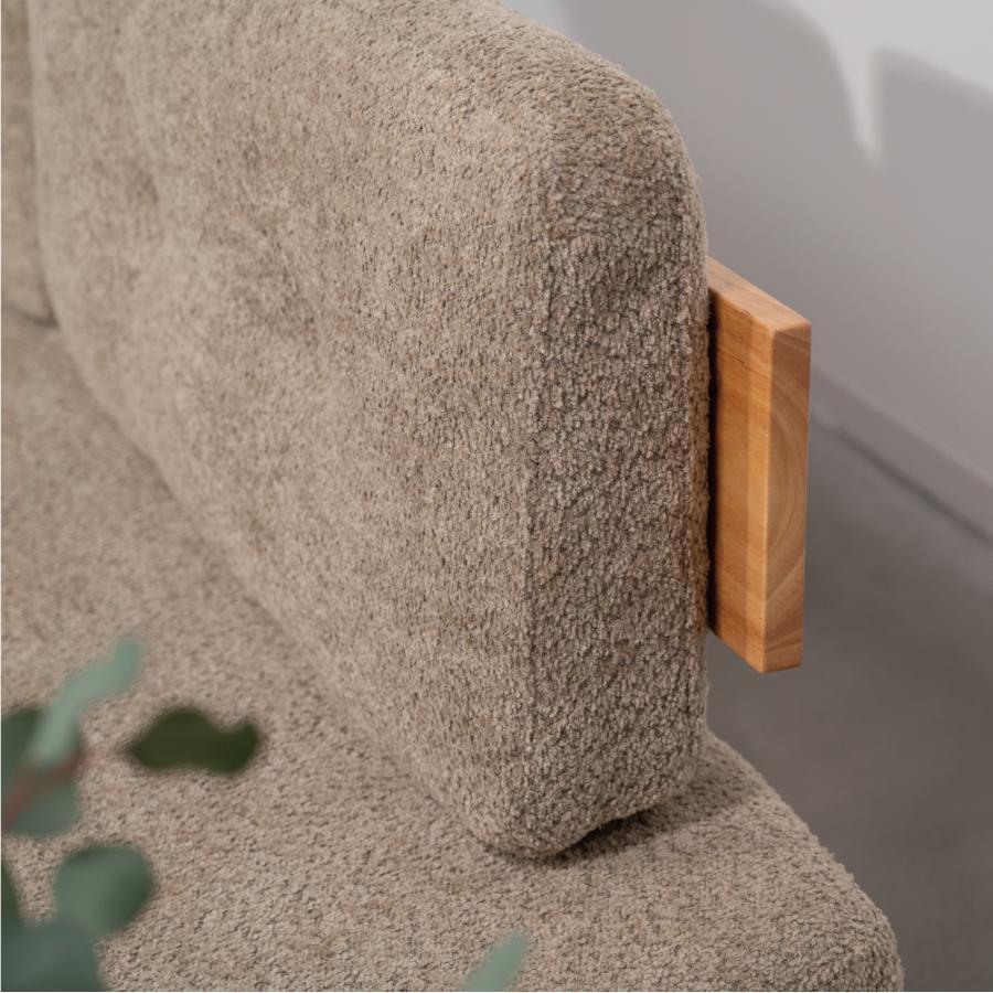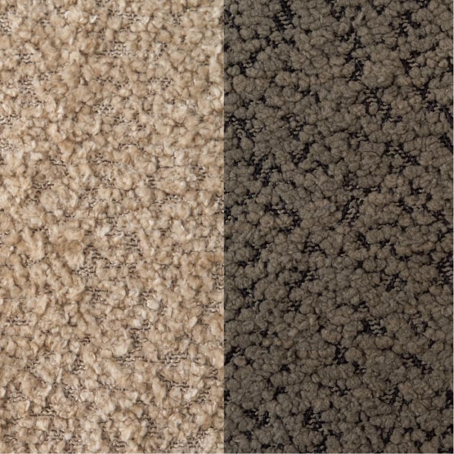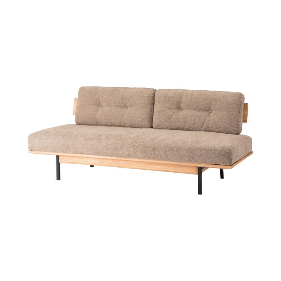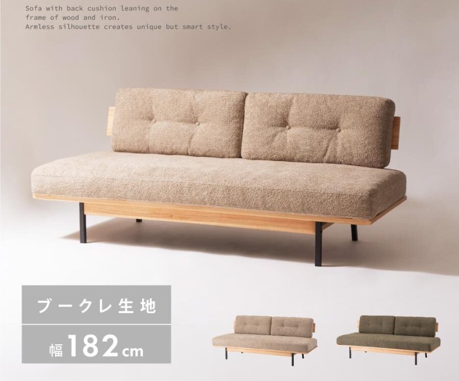 フラットな座面はスタイリッシュなフレームと調和した適度な厚みで、背もたれと同様にブークレ生地を使用しているためふわふわとした手触りがクセになります。