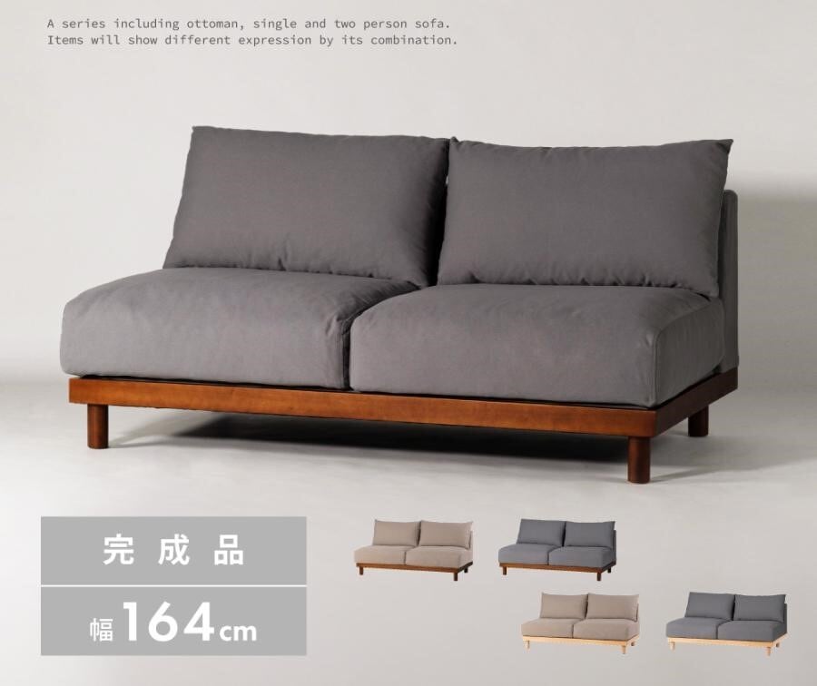 ソファ 2人掛け 2.5人掛け ソファ 2人用 木製 天然木 肘なし アームレス フラット ゆったり 低め おしゃれ 北欧 グレー ベージュ ( 幅160 〜 幅170 )